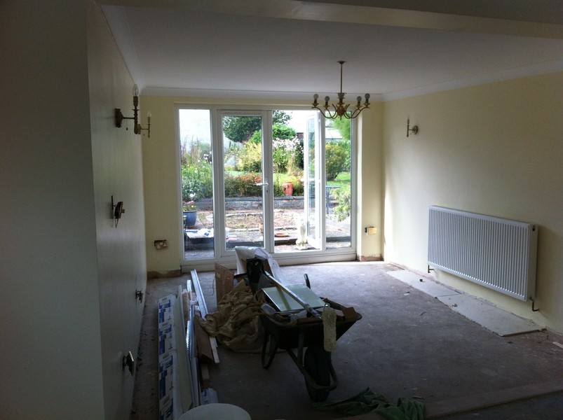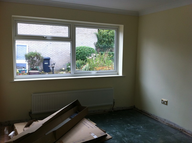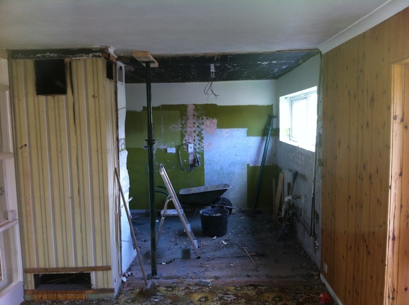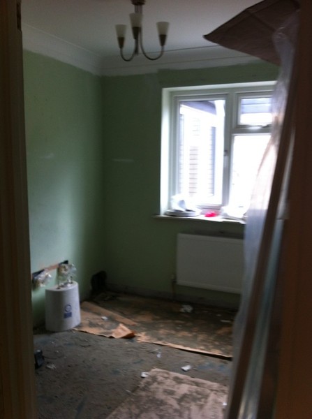 This bungalow was gutted from ceiling to floor, new kitchen & bathroom installed, wood and carpet flooring throughout, walls & ceiling plastered, etc - total house renovation.